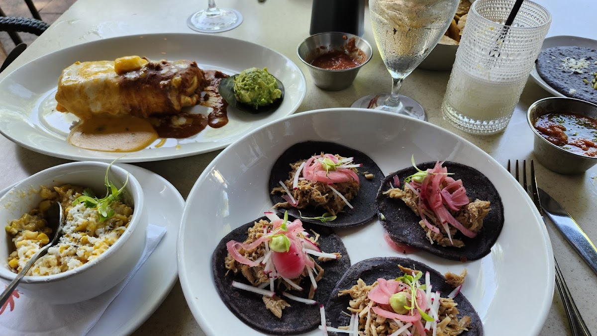 The menu is a delightful journey through flavors. Diners recommend the Hatch Chile Queso, which pairs brilliantly with a variety of salsas—a trifecta of taste that offers something for everyone. The Tequila Pesto Enchiladas and Costra Tacos are not to be missed, with many describing them as “next-level.” You’ll also find innovative options like the Sopes de Carnitas and the festive Xmas Burrito, all crafted with an eye for detail and authenticity.